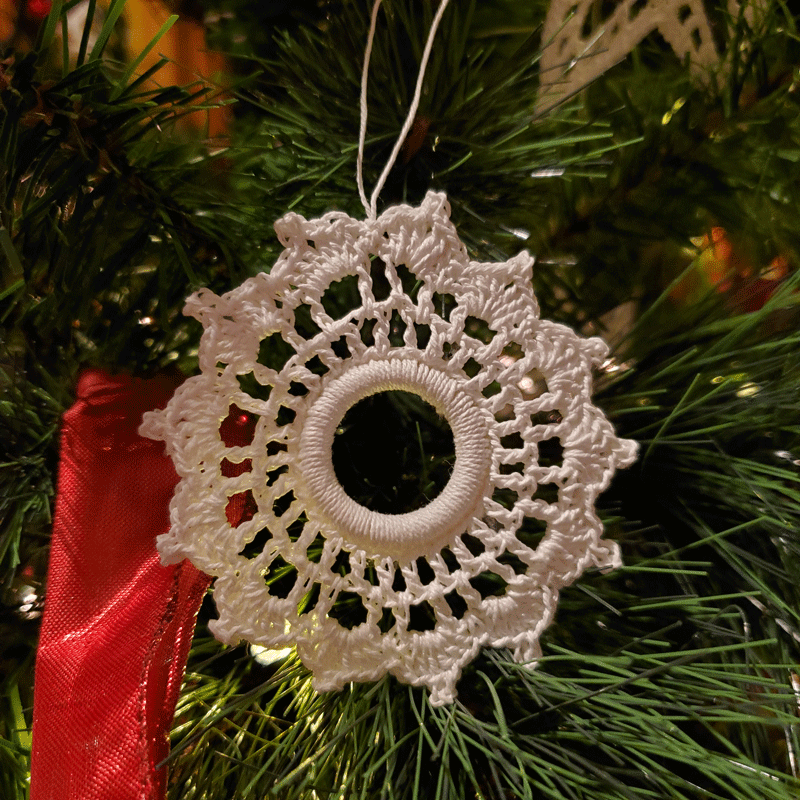 For me, my favorite part of Christmas is decorating the tree with my grandmother’s crocheted snowflakes.