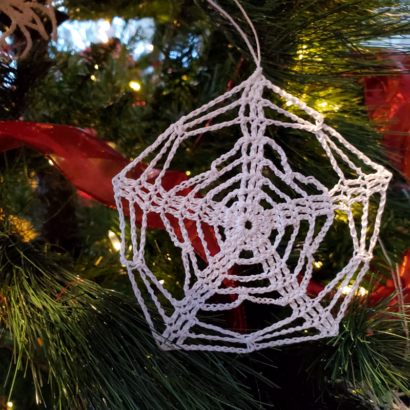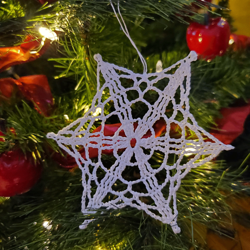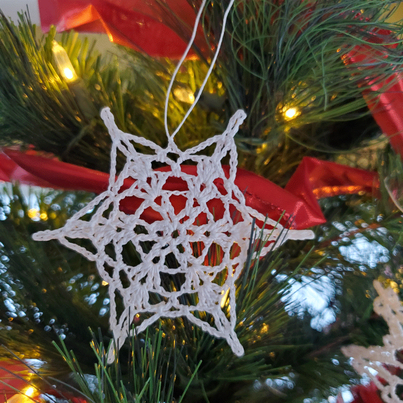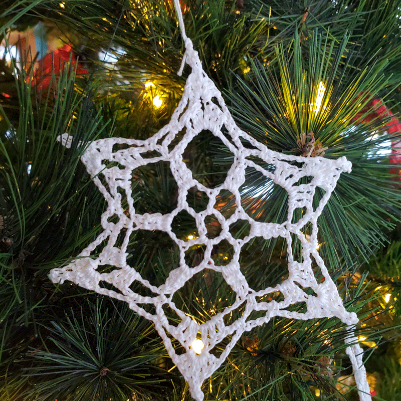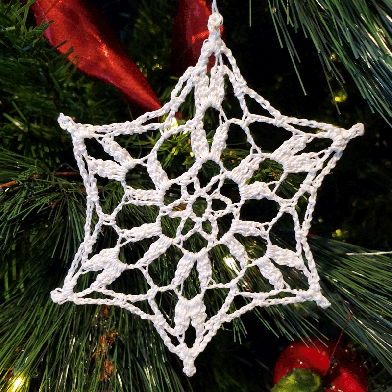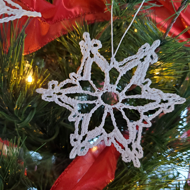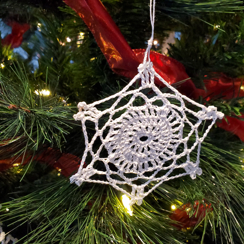 This year, I placed over 3-dozen different snowflakes on my Christmas tree. They range in size from the two, tiny 5-pointed stars (1.5 inches) to the largest 6-inch snowflakes. Most of them are traditional, 6-pointed creations. See if you can find the unusual snowflakes with 11 or 13 points.