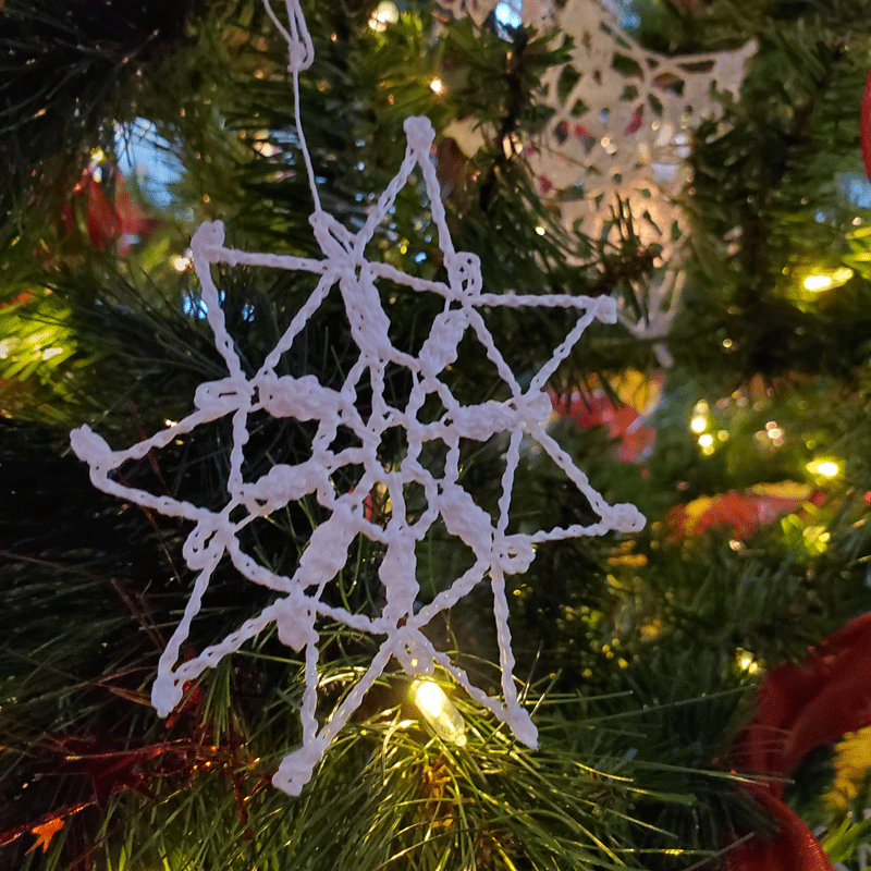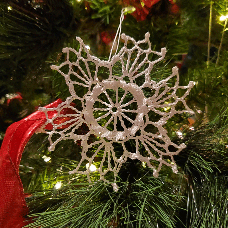 Grandma made snowflakes all year long. She donated hundreds to her Church Auxiliary Bazaar. Annually, she gifted many to family and friends.